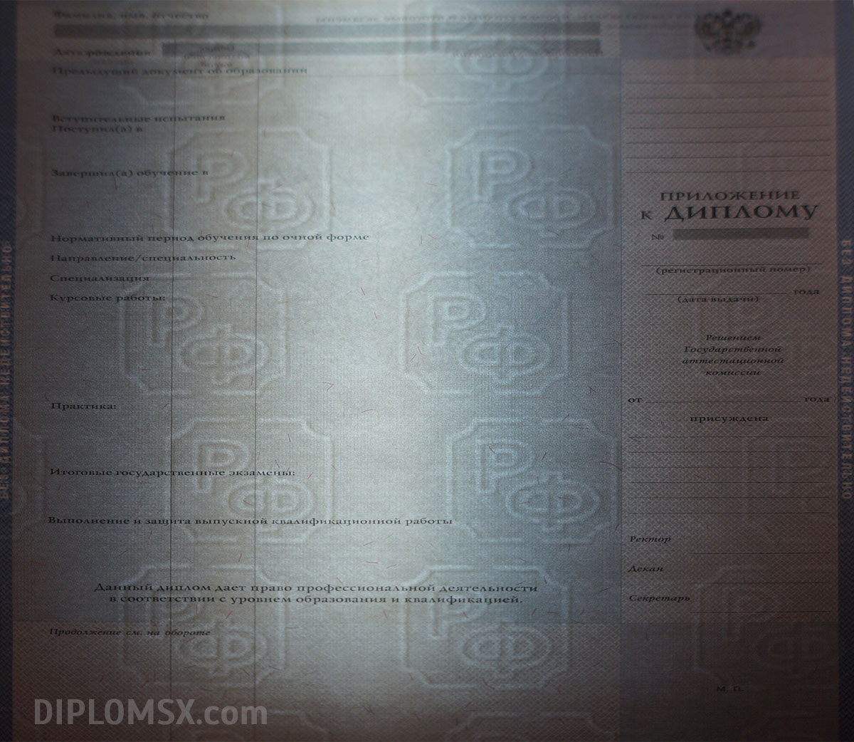 Мы работаем исключительно с оригинальными бланками государственного образца ГОЗНАК, имеющими все необходимые степени защиты, голограммы, водяные знаки и отличительные атрибуты настоящего документа об окончании Вуза. Если сравнивать наш диплом и типографскую копию, которую нередко предлагают другие организации, то документы, предоставляемые нами, выгодно отличаются по всем параметрам, потому что они являются подлинными. Их невозможно отличить от выдаваемых университетами и институтами. С ними легко трудоустроиться, можно пройти любую проверку и быть уверенным в своем будущем. Мы бесплатно доставляем документ по всей территории нашей страны и странам СНГ.